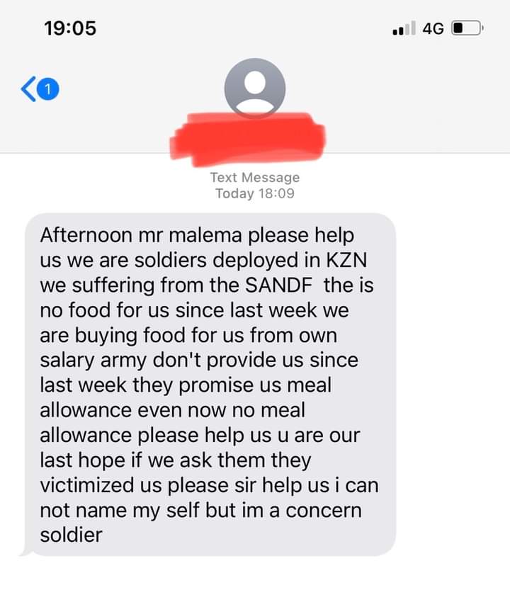 Taking to Twitter the opposition party leader posted a screenshot of a text he received from an unknown SANDF member complaining that they did not receive their allowances. Its actually had the opposite effect. The latest tweets from Jules_Malema.